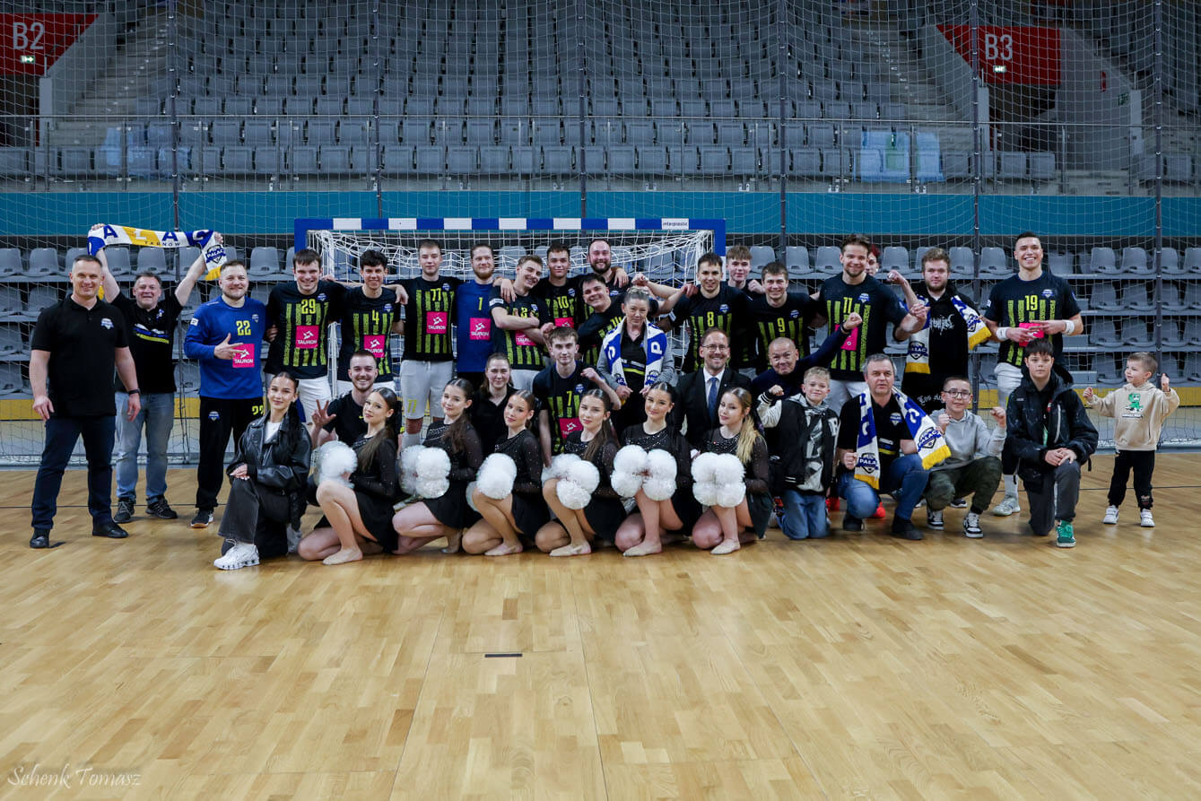 Pierwsza połowa spotkania stała na bardzo wyrównanym poziomie. Obie drużyny od początku narzuciły wysokie tempo gry, a na tablicy wyników długo utrzymywał się rezultat oscylujący wokół remisu. Zespoły odpowiadały na swoje trafienia niemal natychmiast, grając bramka za bramkę i nie pozwalając rywalowi na wypracowanie wyraźnej przewagi. O losach pierwszej części zadecydowały detale – większa skuteczność w końcówce pozwoliła gospodarzom objąć minimalne prowadzenie. Na przerwę schodzili oni z jednobramkową zaliczką, prowadząc 15:14.