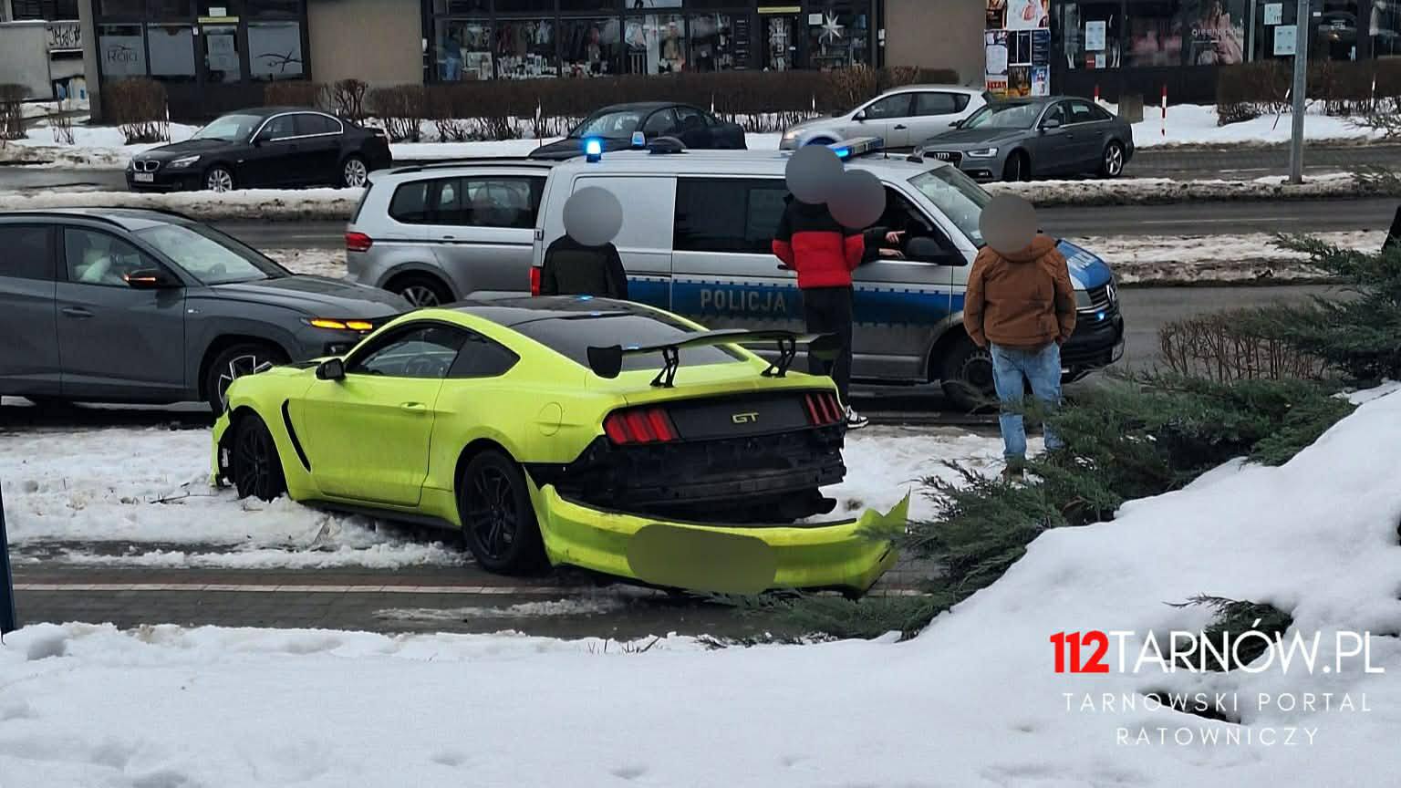 W niedzielę, 25 stycznia po południu do dyżurnego tarnowskiej policji dotarła informacja o zdarzeniu drogowym na ul. Słonecznej w Tarnowie. Skierowani na miejsce policjanci ustalili, że kierujący mustangiem 25-latek nie dostosował prędkości do warunków atmosferycznych, stracił panowanie nad pojazdem, uderzył w zaparkowany na poboczu samochód, po czym wylądował na pasie zieleni.